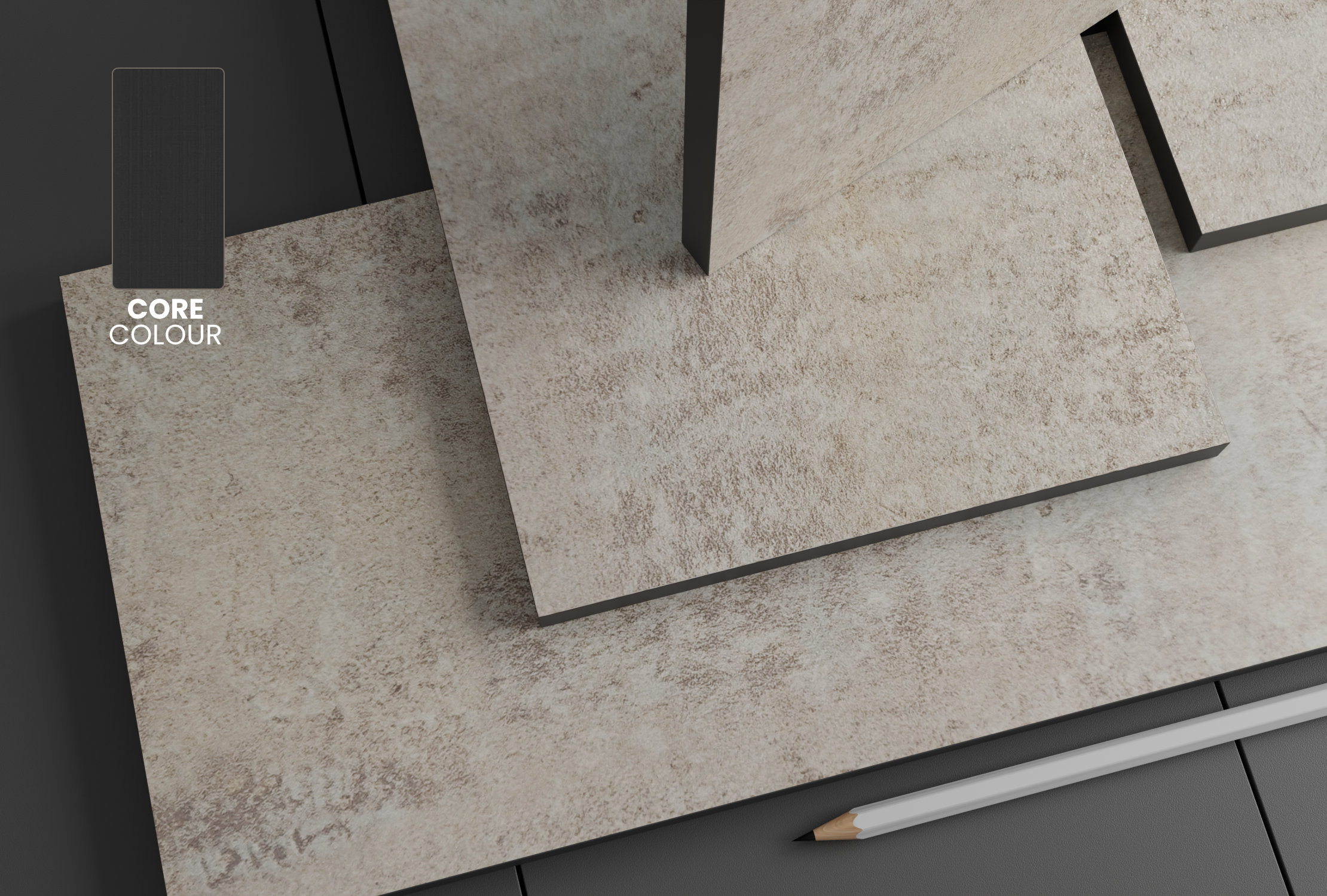 COLLECTION: KOLEKCJA UZUPEŁNIAJĄCAINDEX CODE: MXLAFF8831FAMILY: STONECOLOUR NAME: ELEMENTAL STONECOLOUR CODE: F8831FINISH: CESIZE: 3600/1400CORE COLOUR: BLACK